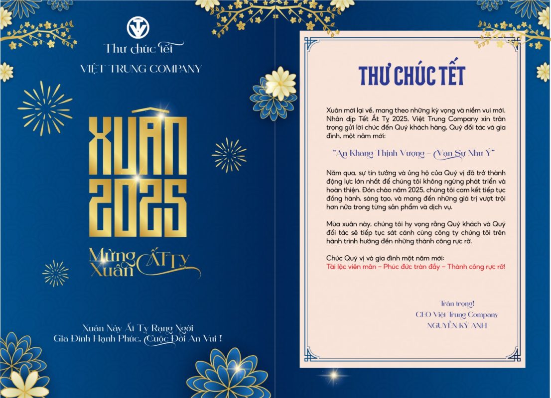 Xuân mới lại về, mang theo những kỳ vọng và niềm vui mới. Nhân dịp Tết Ất Tỵ 2025, Việt Trung Company xin trân trọng gửi lời chúc đế...